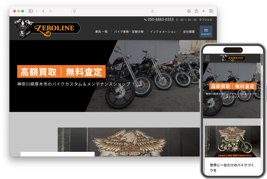 ゼロライン 様 ZERO LINE(ゼロライン)は、神奈川県厚木市にあるバイクカスタム&メンテナンスショップです。 ハーレーダビッドソンはもちろん、国内メーカーの車両にも幅広く対応。整備からカスタム、車検までトータルでサポートしています。 WEBサイトを見る オリジナルデザイン 定型デザイン 修理/車検ページ 買取ページ オリジナルページ パーツ販売 カスタムギャラリー 作業/来店予約 買取査定フォーム ブログ
